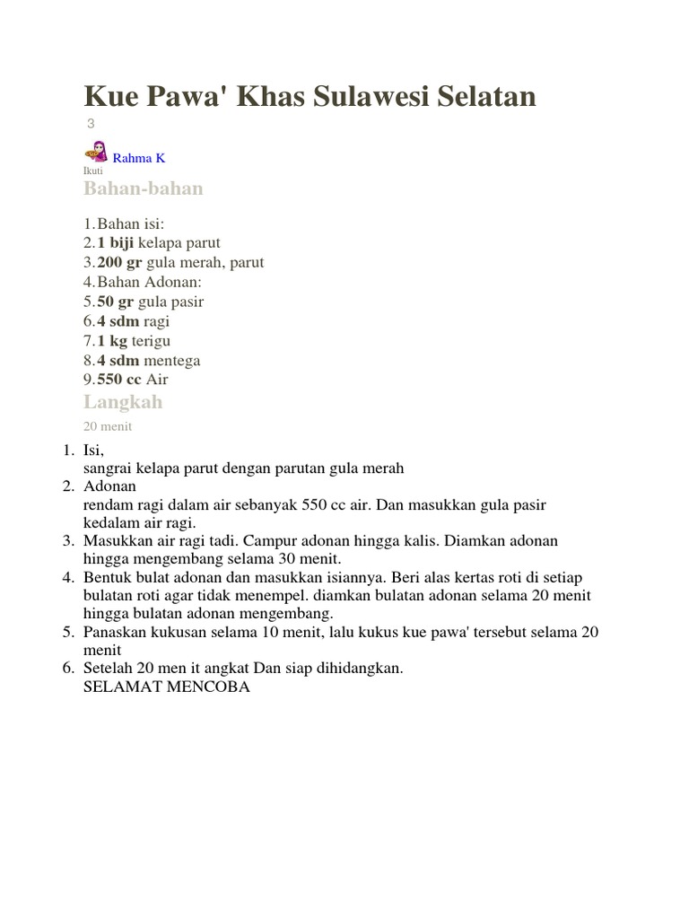 Resep Dan Cara Membuat Kue Pawa’ Khas Sulawesi Selatan - YouTube
