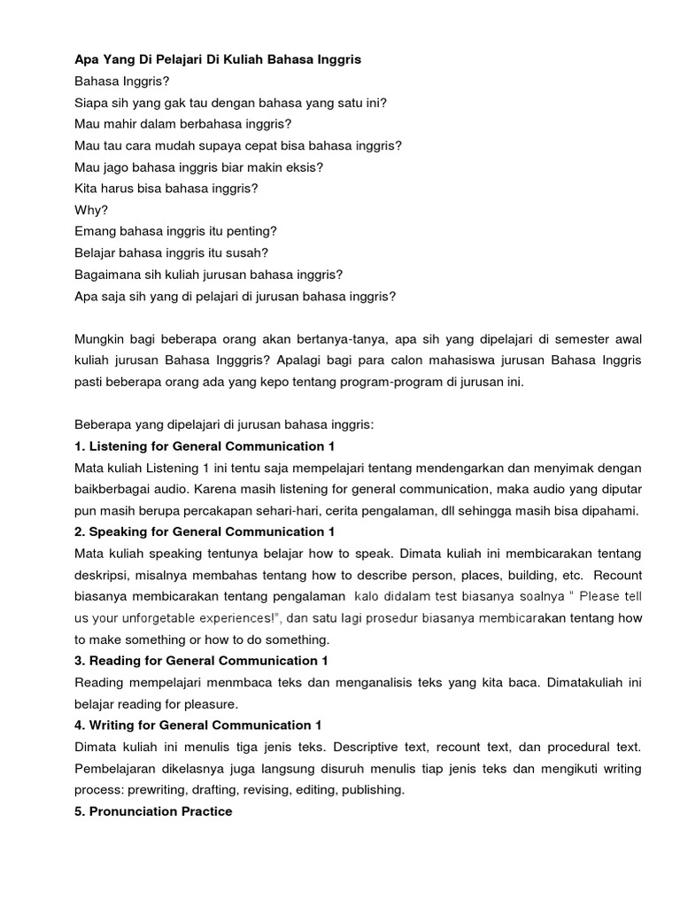 Apa Yang Di Pelajari Di Kuliah Bahasa Inggris