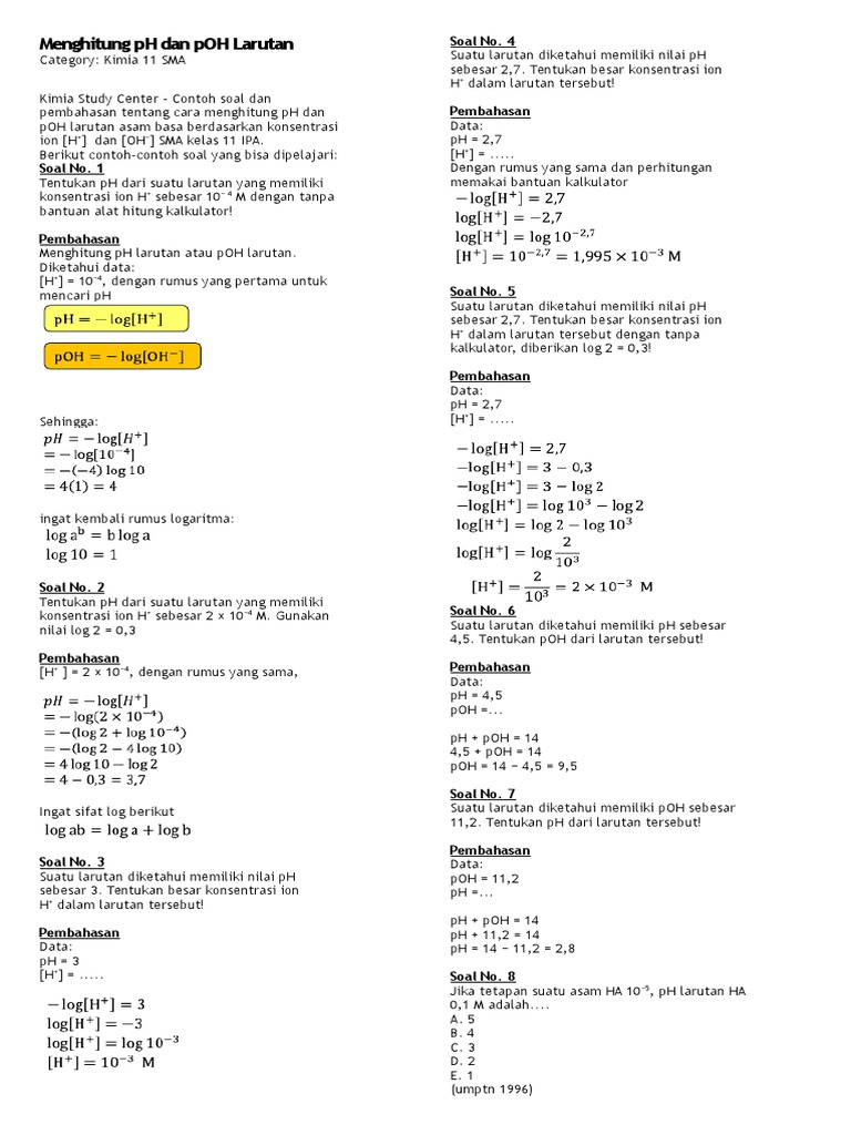 Contoh Soal Dan Jawaban Menghitung Ph - Bali Teacher
