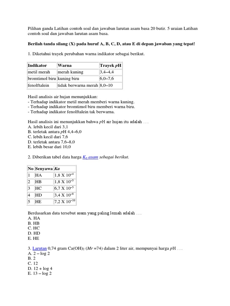 Pilihan ganda Latihan contoh soal dan jawaban larutan asam basa …