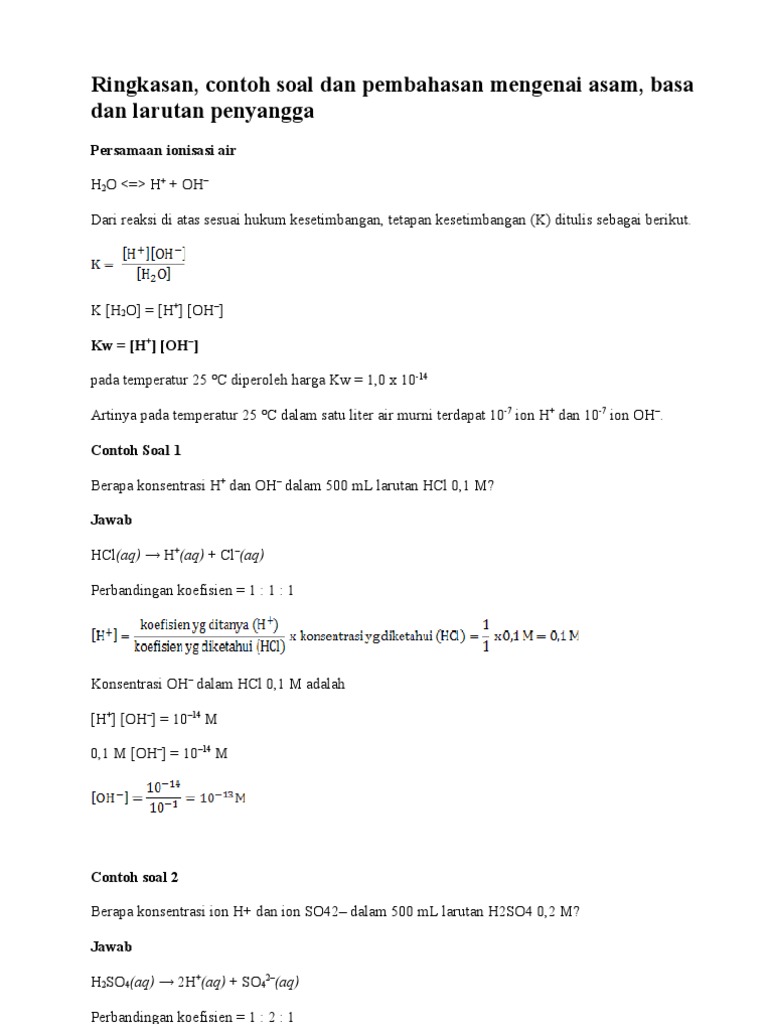 Ringkasan Contoh Soal Dan Pembahasan Mengenai Asam, Basa …