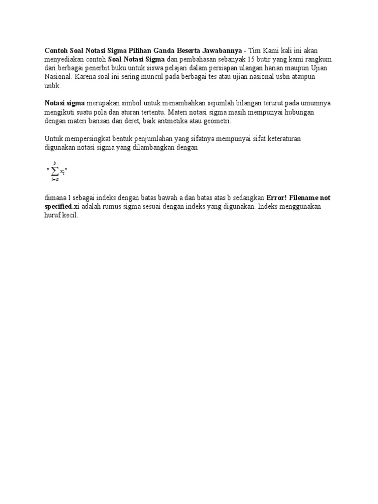 Tim Kami kali ini akan menyediakan contoh Soal Notasi Sigma dan …