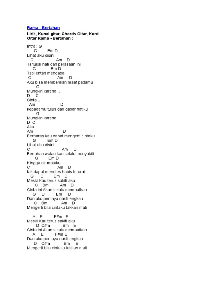 Chord Gitar Dan Lirik Lagu Rama Band Bertahan