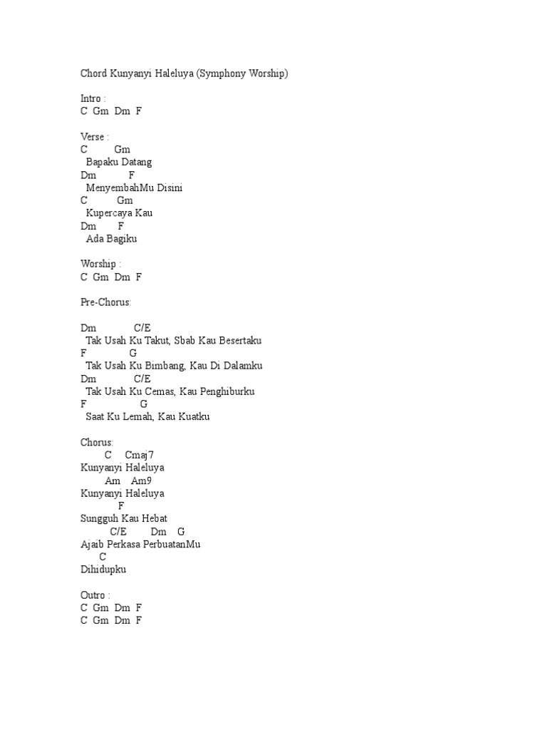 Chord Gitar Lagu Kunyanyi Haleluya Dari C