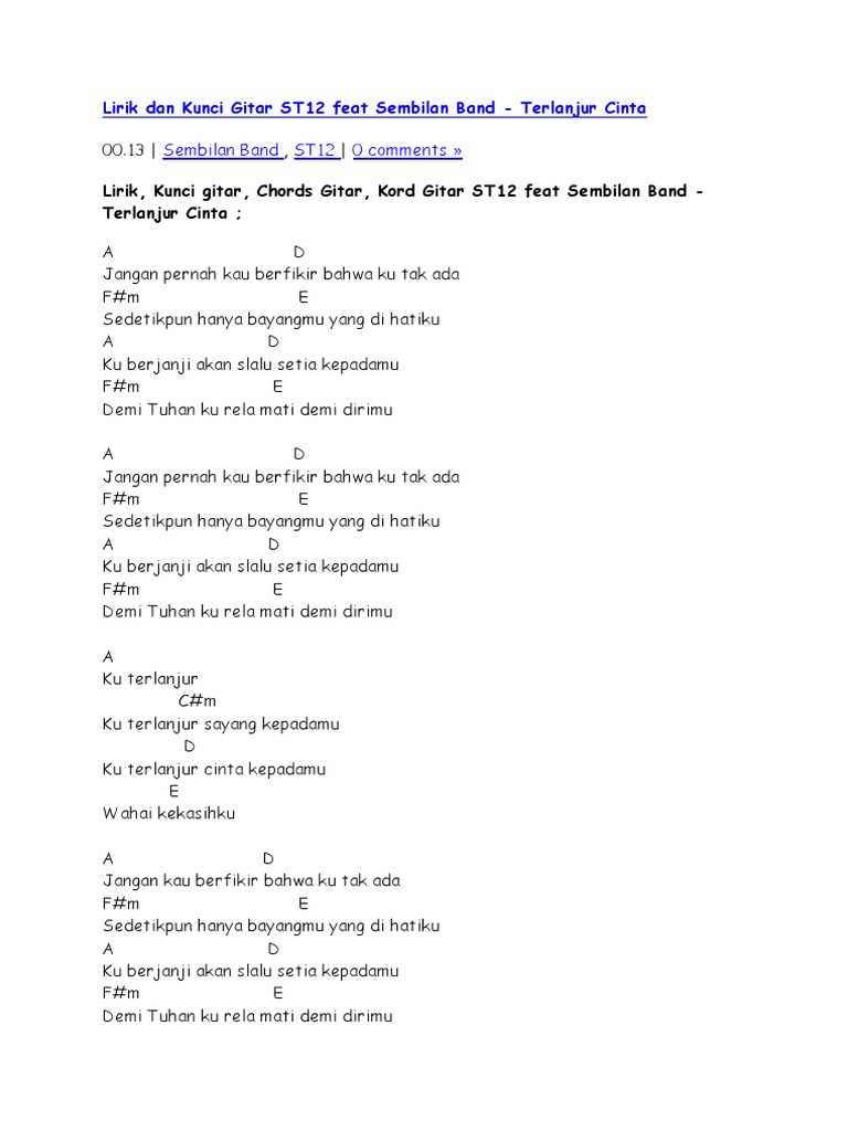 Kunci Gitar dan Lirik Lagu ST 12 - Jangan Pernah Berubah - bangka …