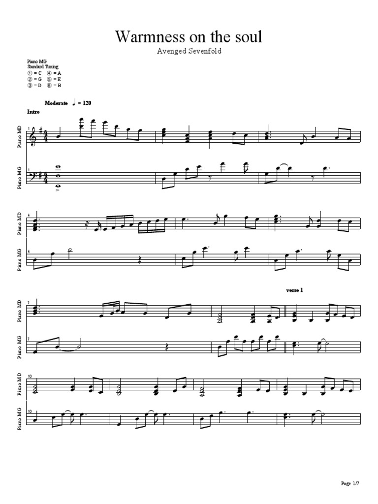 View A7X Warmness On The Soul Piano Sheet Music Pics · Melody …
