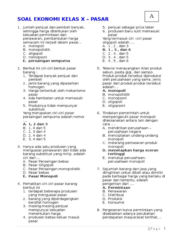 Soal Ekonomi Sma Kelas 10 Semester 1 Dan Kunci Jawaban - Guru Galeri