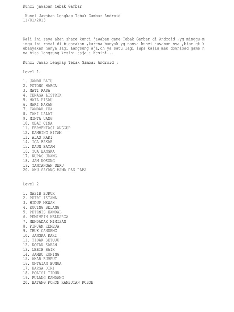 Kunci Jawaban Tebak Gambar Level 3 Terbaru 2016 - Ngetik