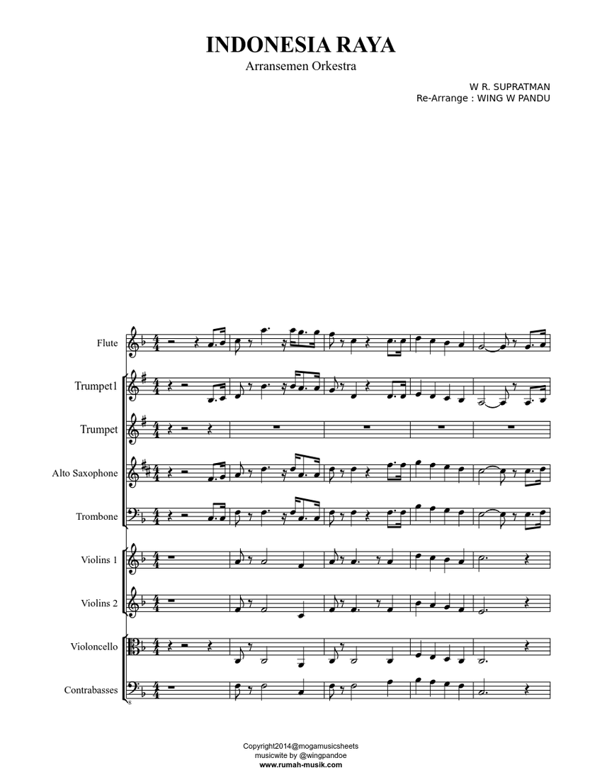 Indonesia Raya untuk Orkes Simfoni Sheet music for Violin, Flute …