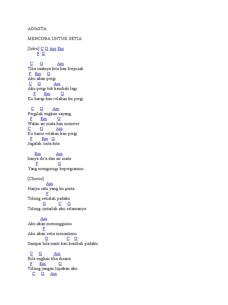 Chord Kunci Gitar dan Lirik Lagu Mencoba Untuk Setia - Adista …