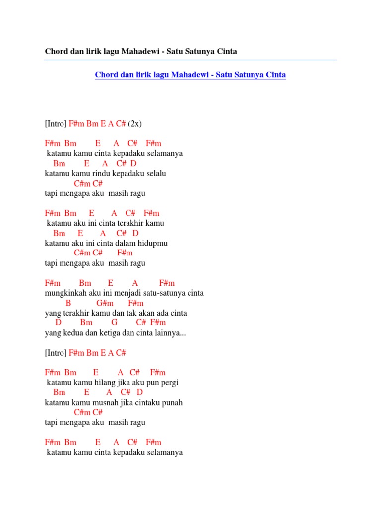 Chord dan lirik lagu mahadewi satu satunya cinta by Chord Zila - issuu