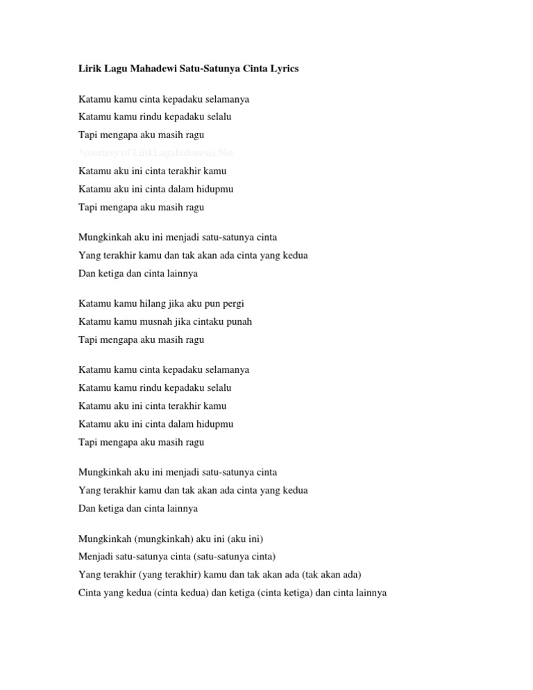 Lirik lagu: Satu Satunya Cinta oleh Mahadewi :: Cari Lirik Lagu di …