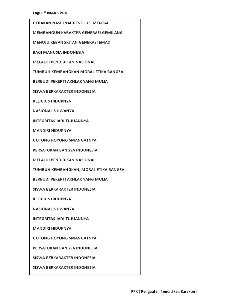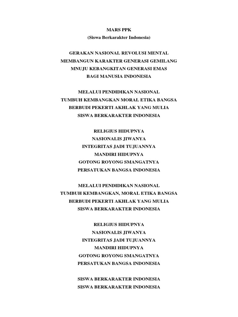 Instrumen Dan Lirik Mars Ppk Siswa Berkarakter Indonesia - Cute766