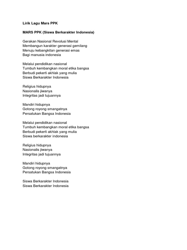 Lirik Lagu MARS PPK (Siswa Berkarakter Indonesia) - Download mp3 …
