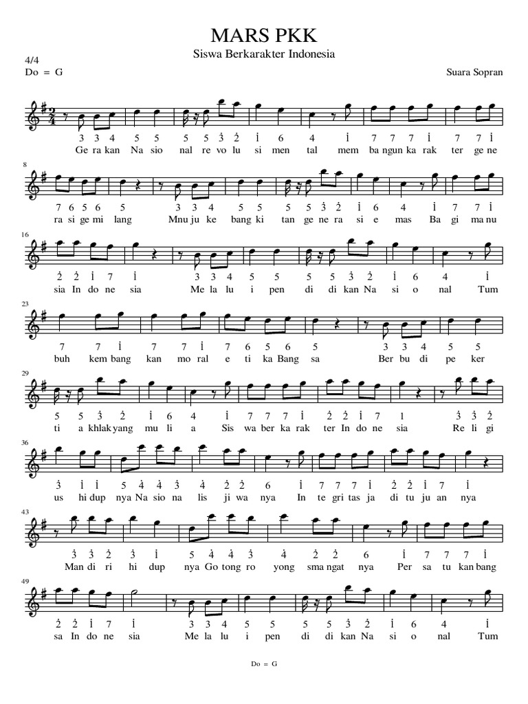 Not Angka Lagu Mars Ppk - Kumpulan Not Lagu