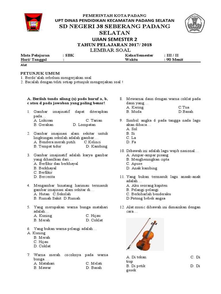 Sd Negeri 38 Seberang Padang Selatan: Lembar Soal
