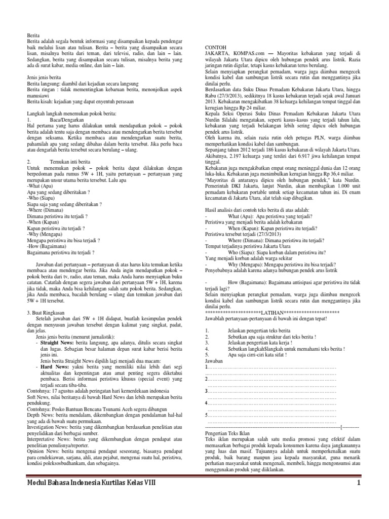 Soal Bahasa Indonesia Kelas 8 - Teks Berita - Bahasa Indonesia