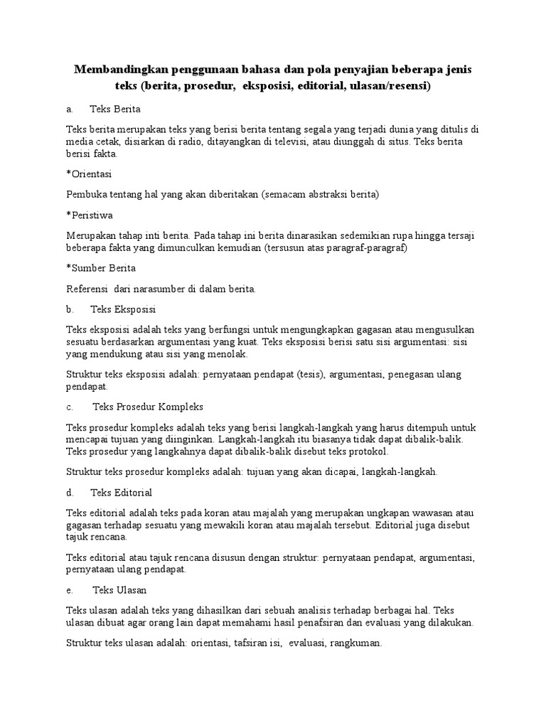 Membandingkan Penggunaan Bahasa Dan Pola Penyajian Beberapa Jenis Teks