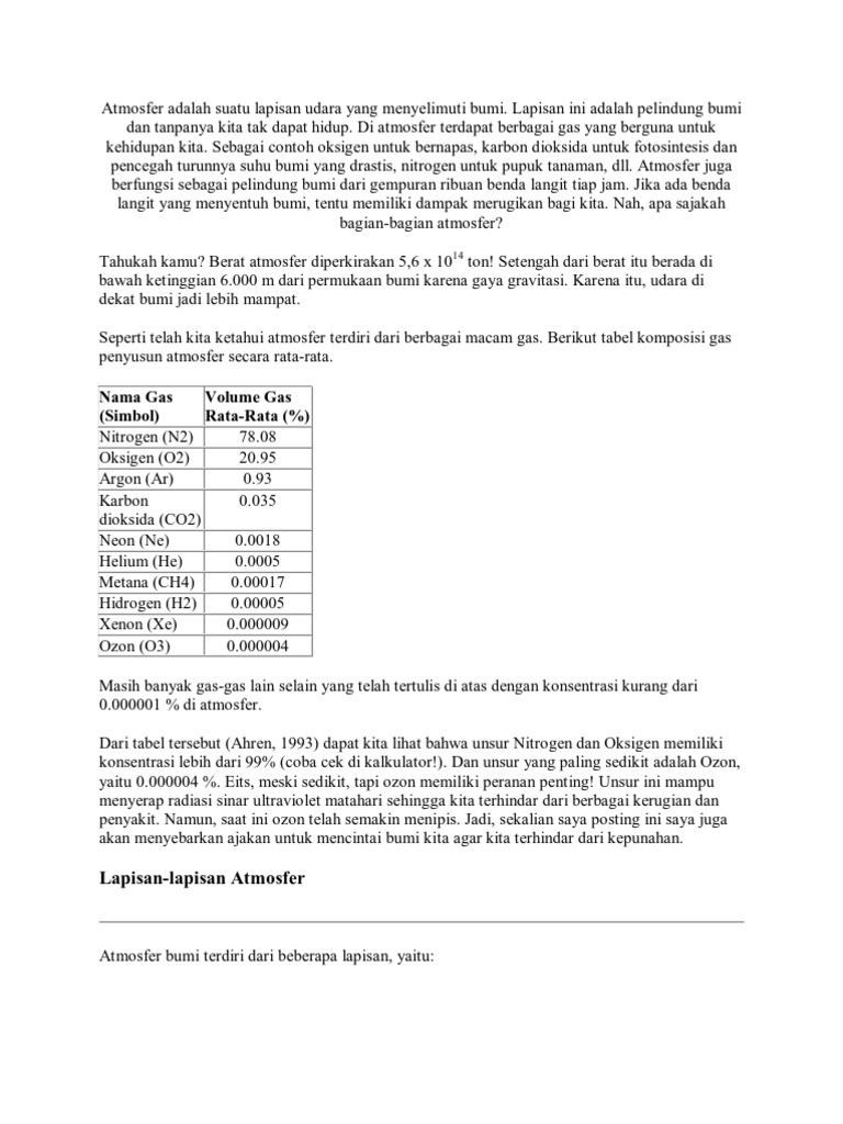 Atmosfer Adalah Suatu Lapisan Udara Yang Menyelimuti Bumi