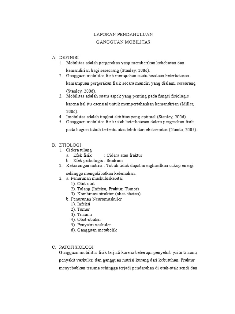 Laporan Pendahuluan Mobilitas Fisik – Banjarbaru