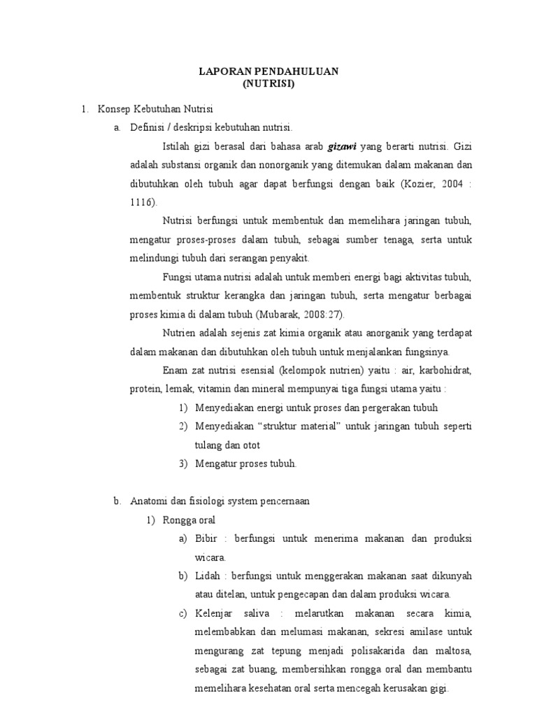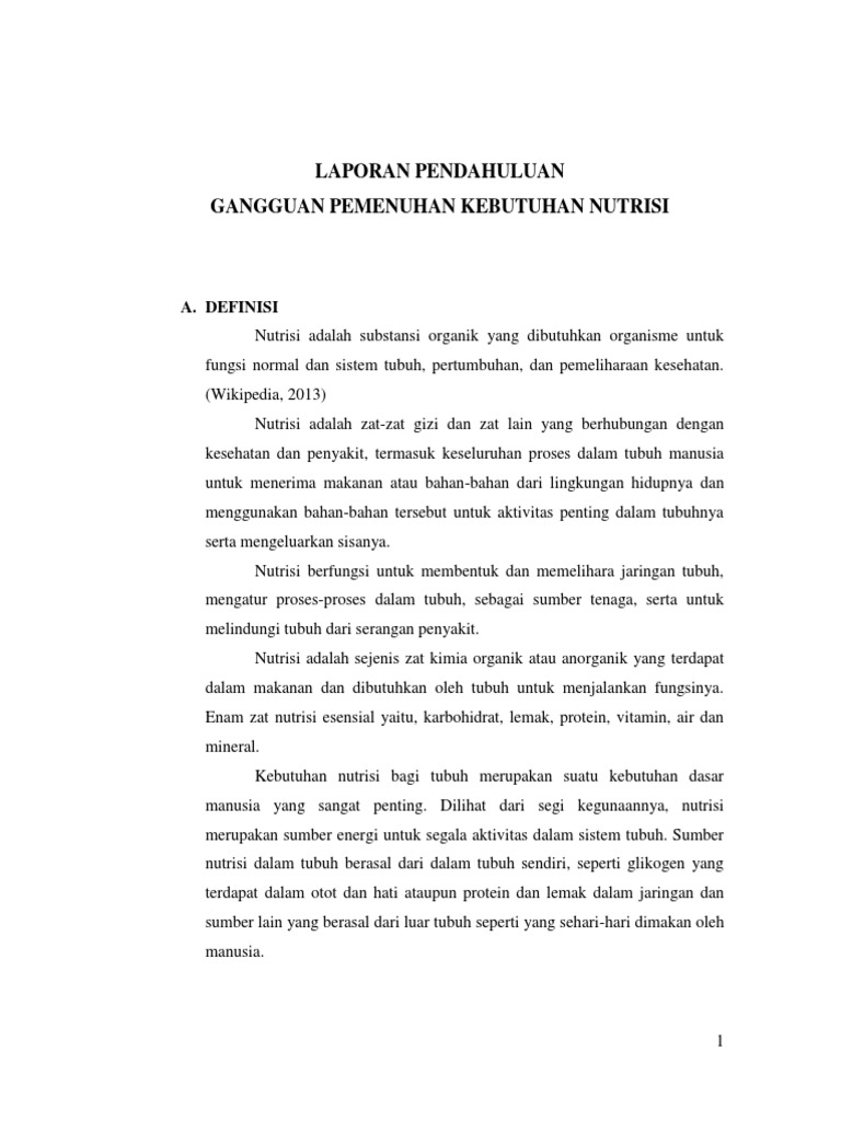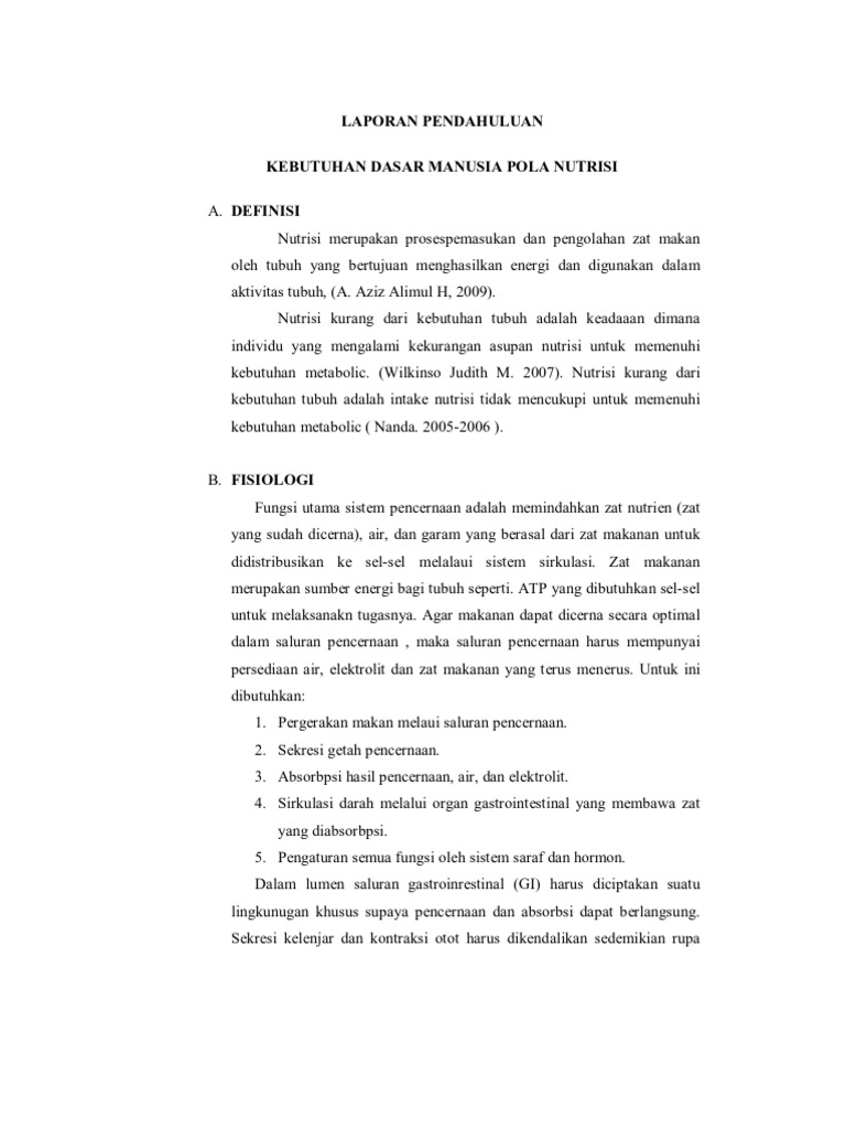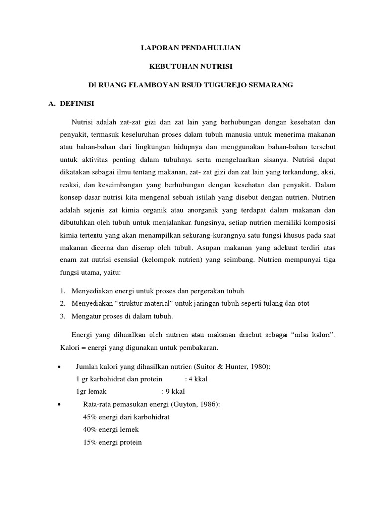 Laporan Pendahuluan Kebutuhan Nutrisi Pdf - Seputar Laporan