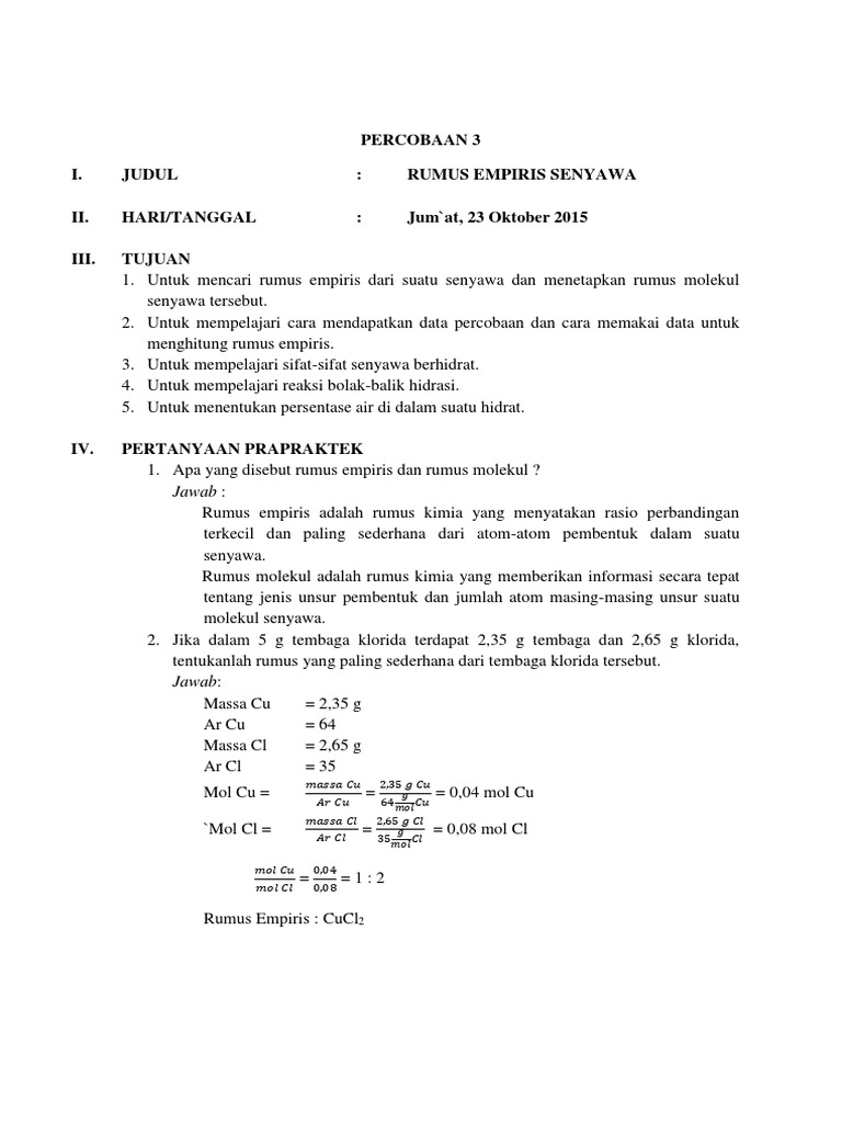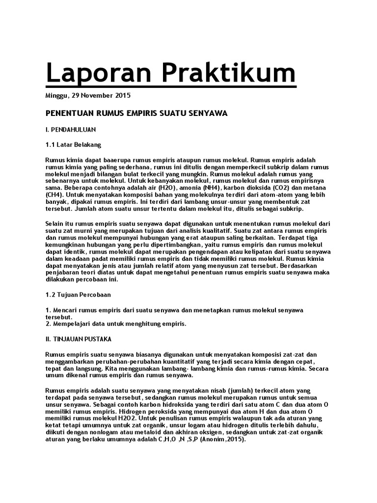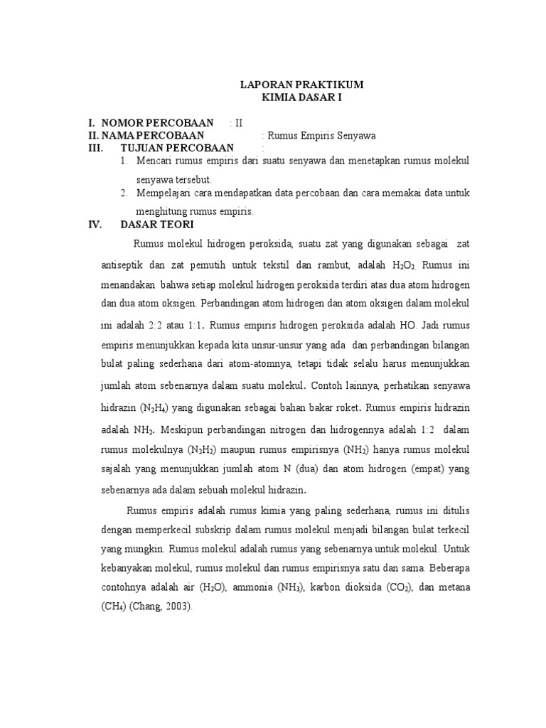 EGON DOANK: LAPORAN PRAKTIKUM KIMIA DASAR - RUMUS EMPIRIS SENYAWA …