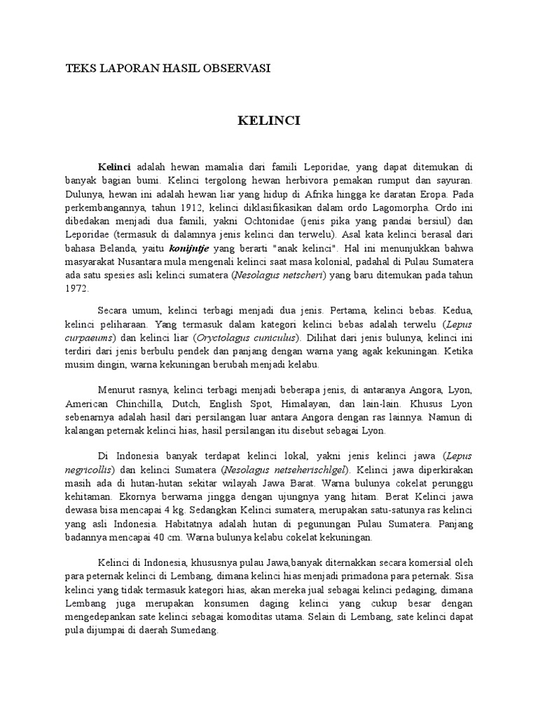 Teks Laporan Observasi ⋆ DOC | PDF ⋆ Download Contoh Makalah Lengkap