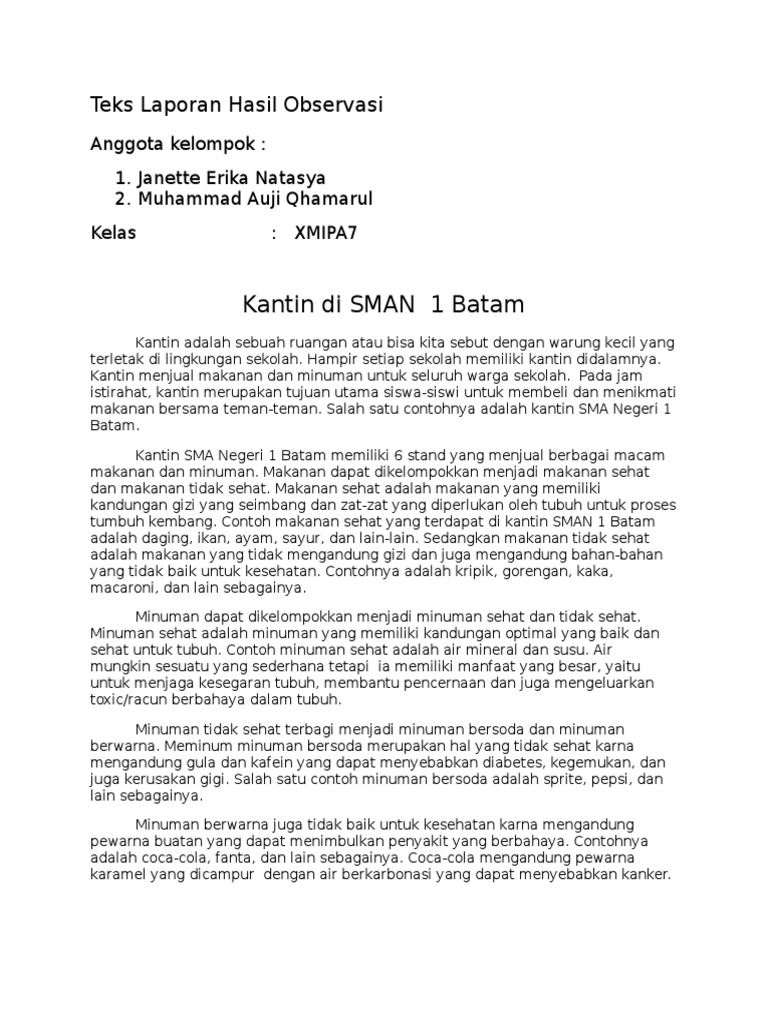 Teks Laporan Hasil Observasi