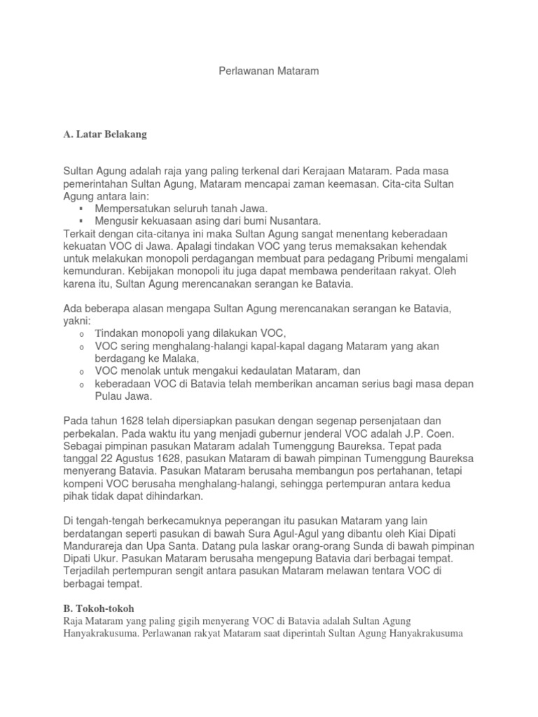 sejarah.docx - Perlawanan Mataram A Latar Belakang Sultan Agung adalah raja yang paling terkenal dari Kerajaan Mataram Pada masa pemerintahan Sultan | Course Hero