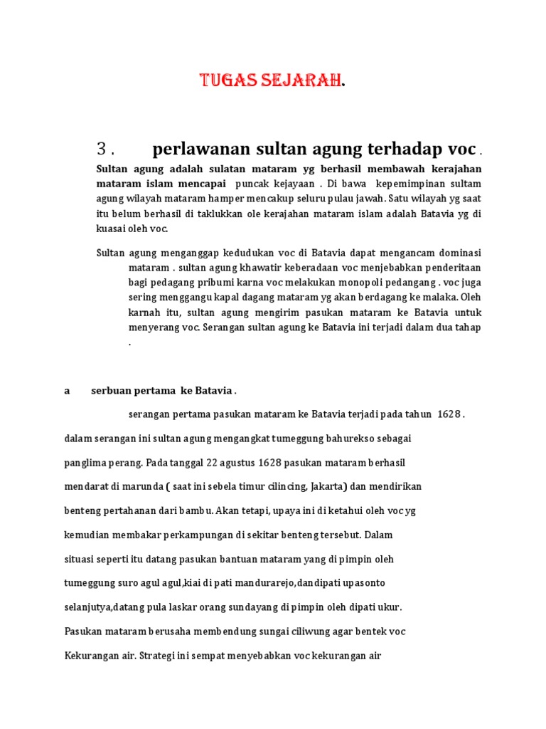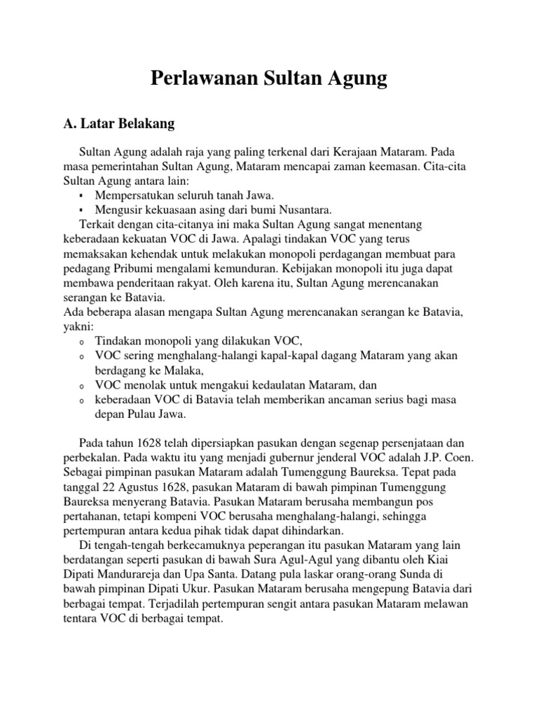 PERLAWANAN SULTAN AGUNG TERHADAP VOC.docx - PERLAWANAN SULTAN AGUNG TERHADAP VOC A Latar Belakang Masalah Sultan Agung adalah salah satu raja di | Course Hero