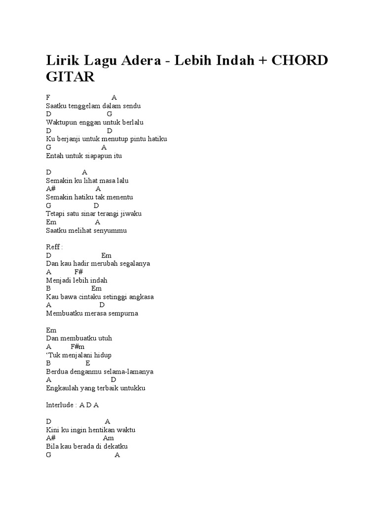 Love Quotes on Twitter: “Chord Gitar #Adera - Lebih Indah: Lirik Lagu, Kunci Gitar, Kord, Chord Gitar Adera - Lebih… http://t.co/cbSe7sM4uS”