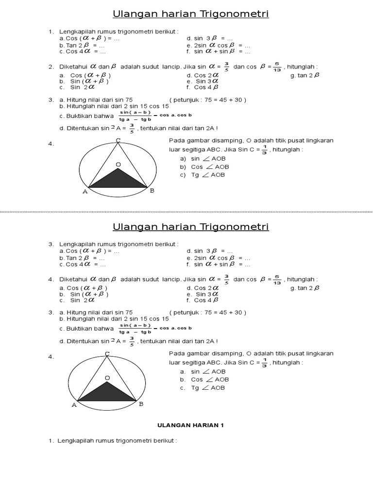 Soal Matematika SMA -Ulangan Harian Trigonometri
