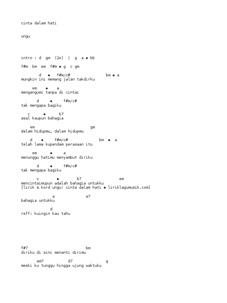 UNGU - CINTA DALAM HATI Chords - Chordify