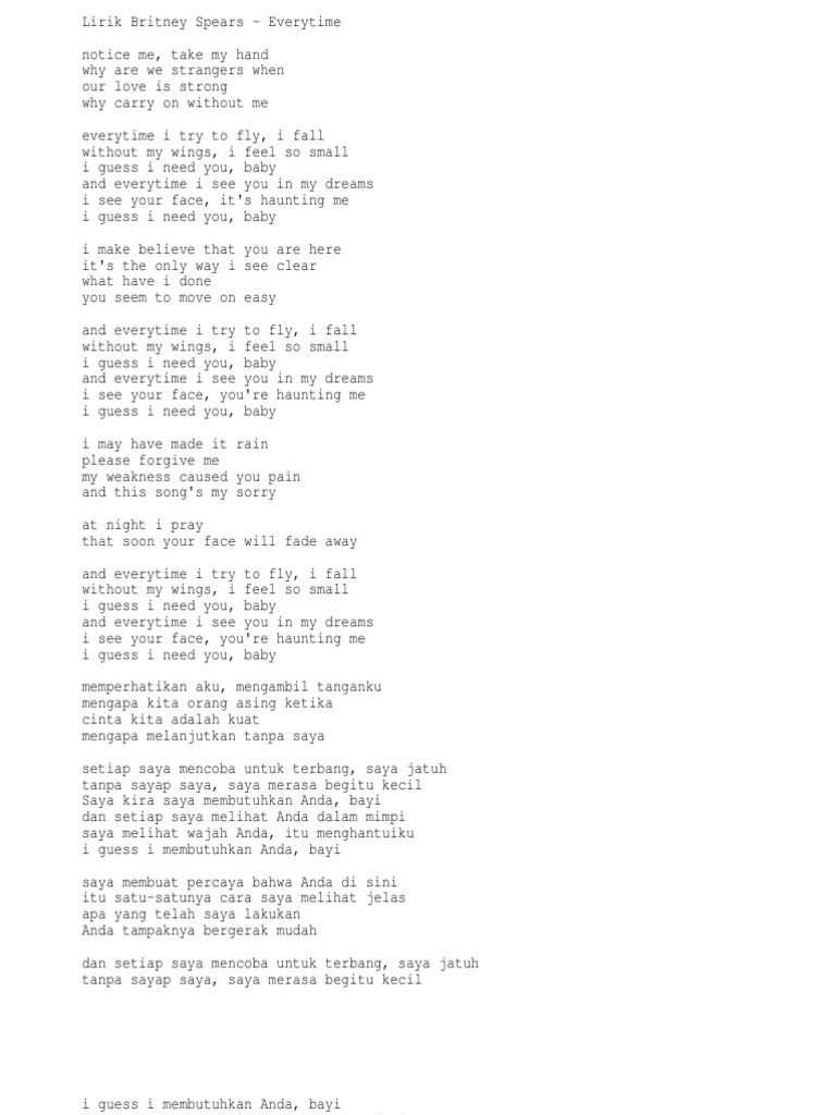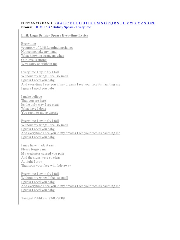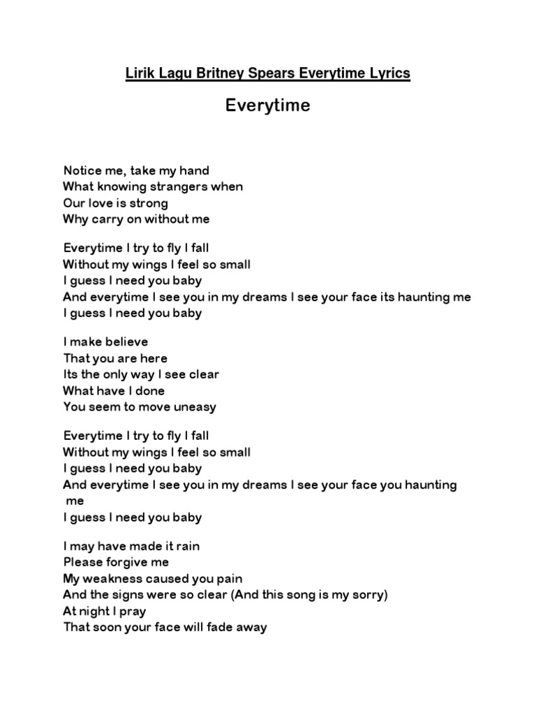 Lirik Lagu Barat - Britney Spears - Everytime - Wattpad