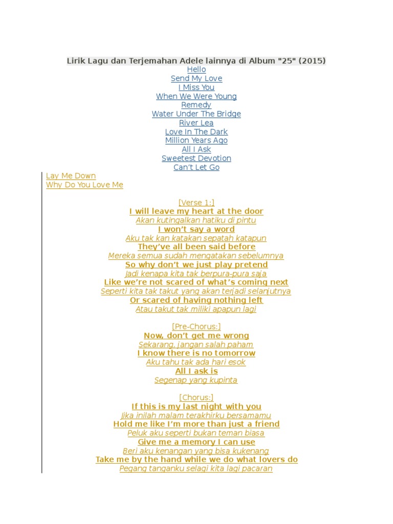 Adele When We Were Young Lirik Dan Terjemahan - Adele Hello …
