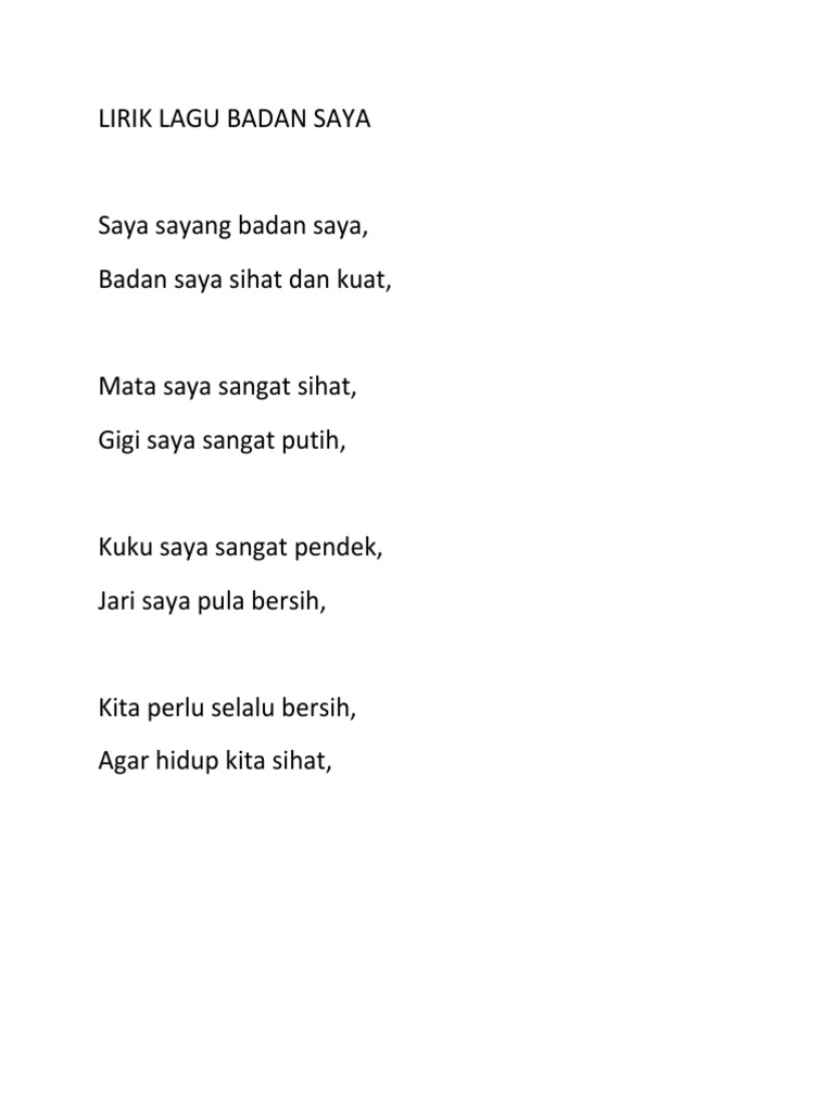 Lirik Lagu Remaja: lirik lagu anak dua mata saya hidung saya satu …