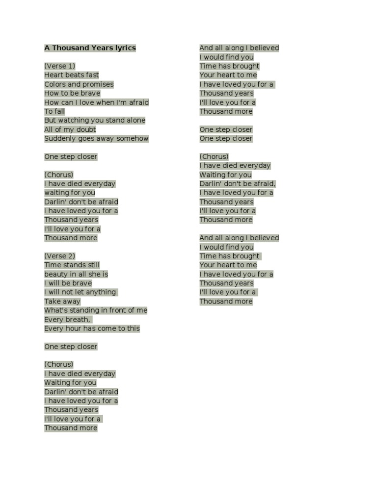 DOC) Arti Lirik Lagu A Thousand Years | rere rararuru - Academia.edu