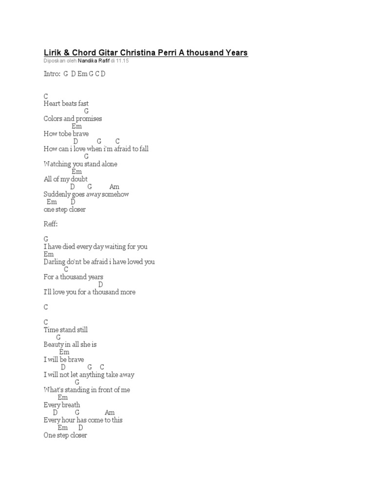 Chord Kunci Gitar dan Lirik Lagu A Thousand Years - Christina …