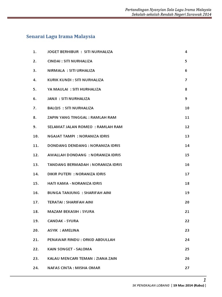 Lirik Lengkap Nyanyian Solo Lagu Irama Malaysia