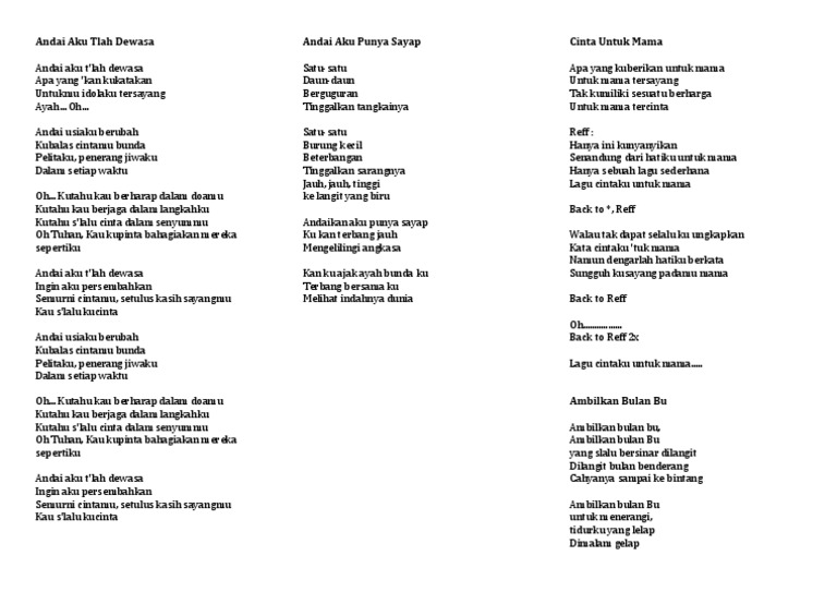 Teks Lagu Andai Aku Tlah Dewasa - Berbagai Teks Penting