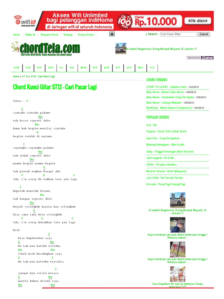 Kunci Gitar dan Lirik Lagu ‘ST 12 - Cari Pacar Lagi’ Kunci Dasar C - bangka.sonora.id