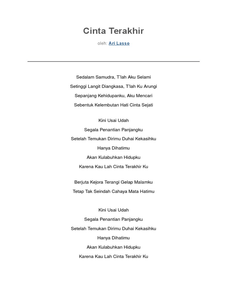 Lirik Lagu Ari Lasso - Cinta Terakhir - LirikLagu.id