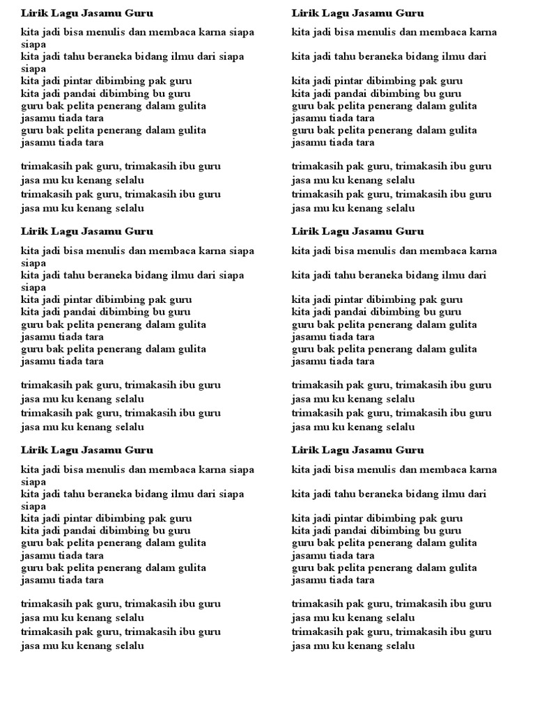 Lirik lagu Jasamu Guru ada yg tau gk klau ada yg tau tolong ya …