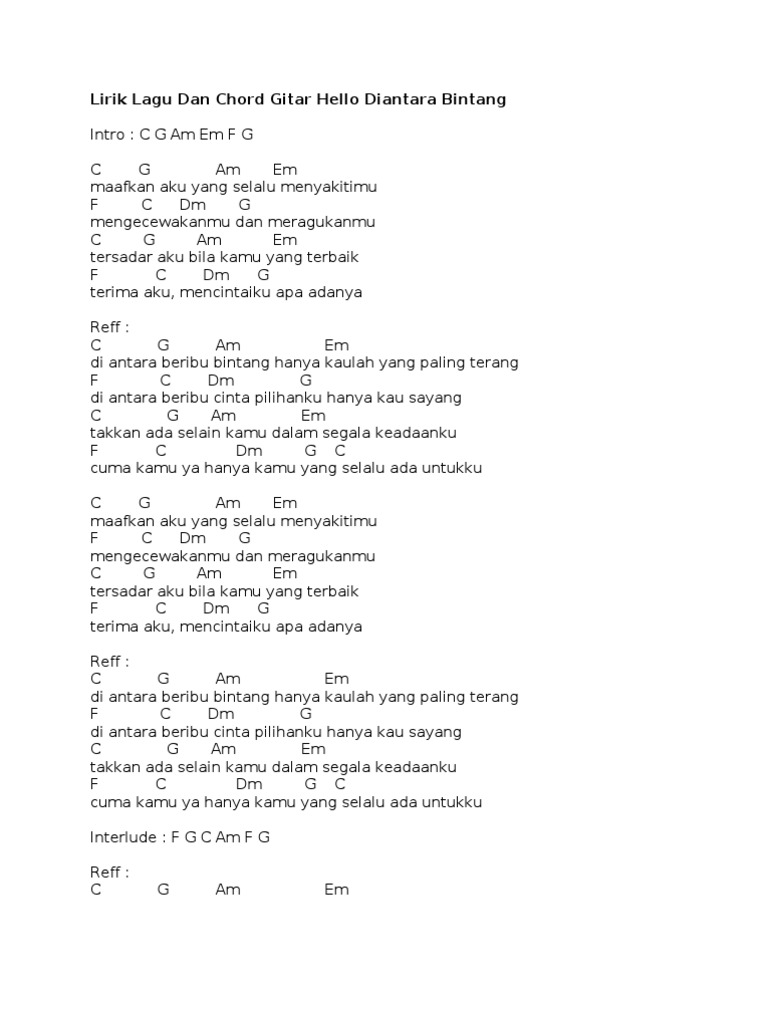 Lirik Lagu Dan Chord Gitar Hello Diantara Bintang