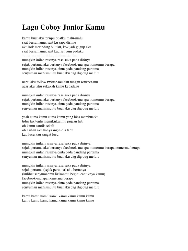 Lirik Lagu Coboy Junior Kamu Lyrics