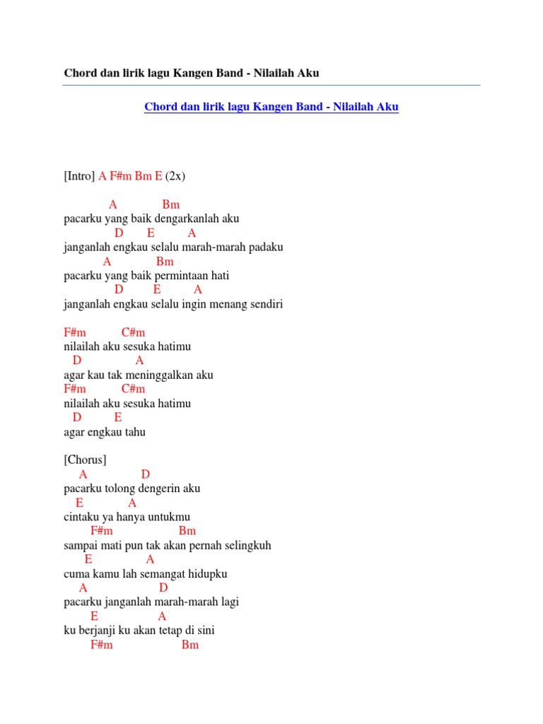 Chord Dan Lirik Lagu Kangen Band - Nilailah Aku