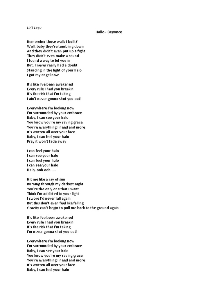 Lirik lagu ( part 1 ) - Halo - Beyonce Knowles - Wattpad