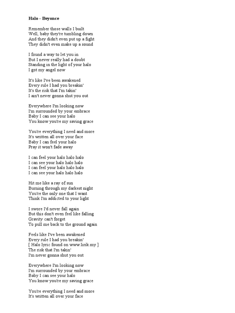 Lirik lagu Halo - Beyonce | Beyonce, Lirik lagu, Lingkaran cahaya