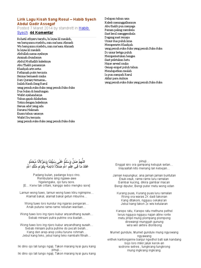 Lirik Lagu Kisah Sang Rosul - Habib Syech Abdul Qodir Assegaf …