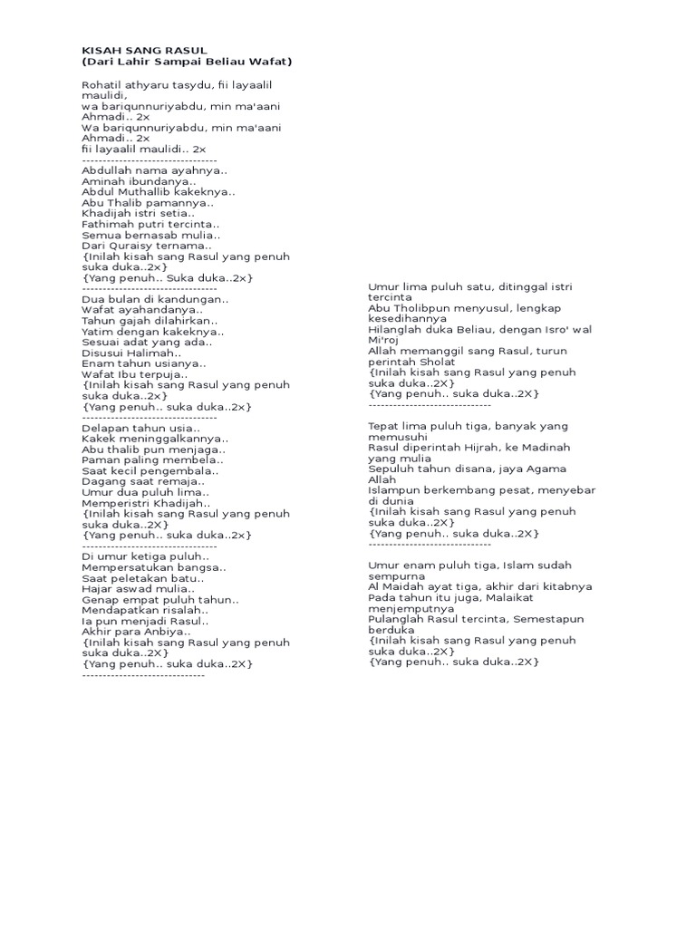 Lirik Kisah Sang Rasul Lirik Teksnya,… - Kumpulan Lirik Syair …